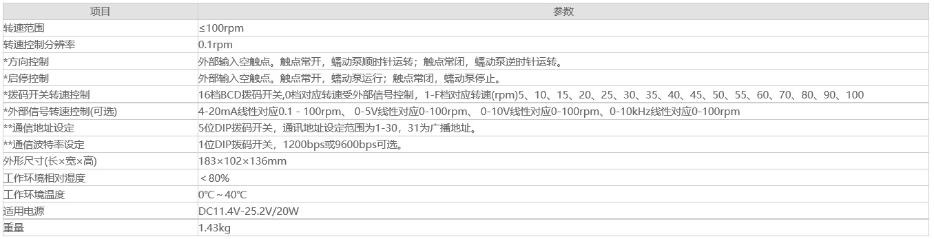 T100系列ODM蠕動泵驅動器由57步進電機選配多種控制方式形成的體積小、結構簡單、控制簡便的蠕動泵驅動器產(chǎn)品系列。主要在設備、儀器中配套使用,實現(xiàn)430mL/min以下的流體傳輸。采用撥碼開關結合外部信號的控制方式,外部信號可選4-20mA、0-5V、0-10V、0-10kHz,并可提供采用RS485通訊控制方式的產(chǎn)品。采用底板、面板兼容的安裝方式。