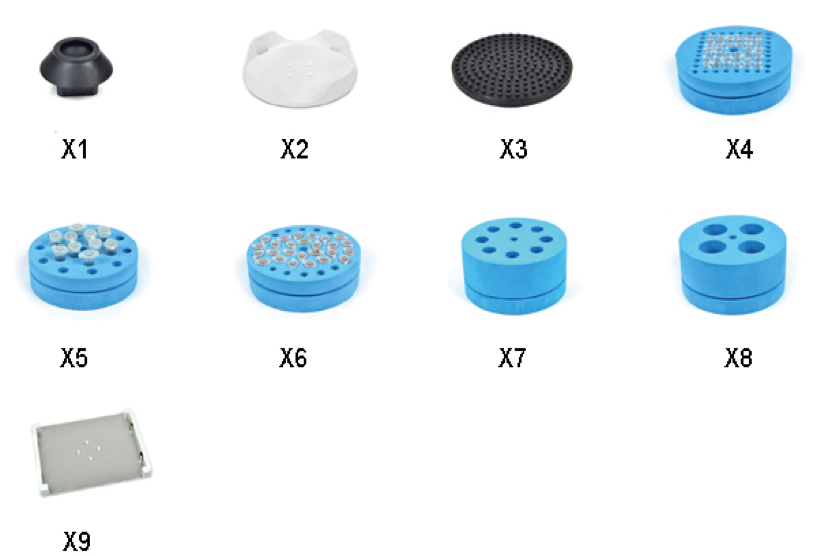 | X1 | 標(biāo)準(zhǔn)頭,用于直徑小于30mm的試管和小容器 |