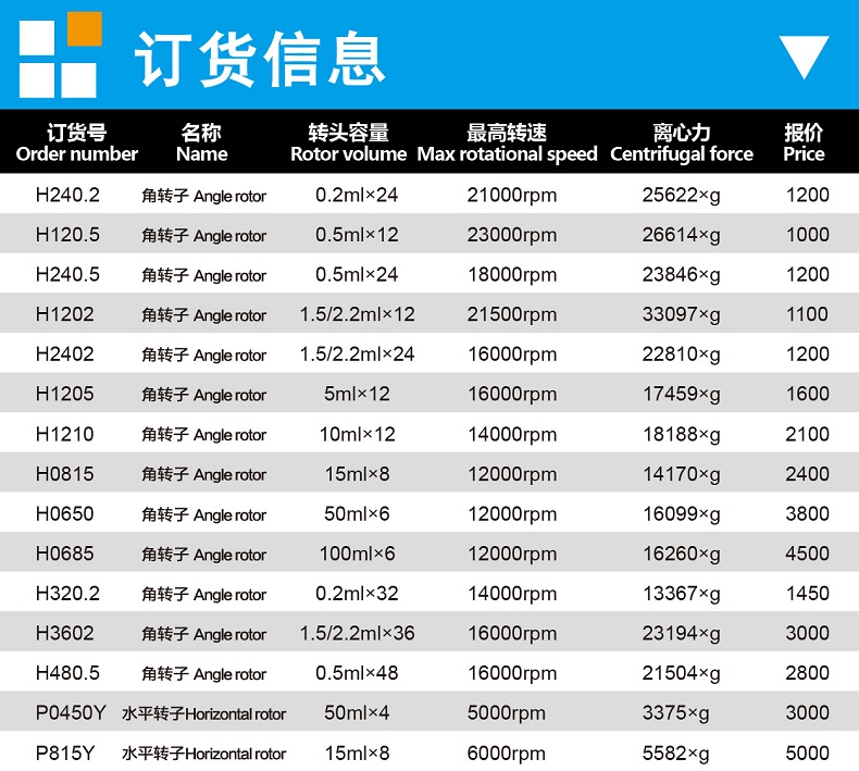 | H3602 | 角轉(zhuǎn)子 | 16000rpm | 23194g |