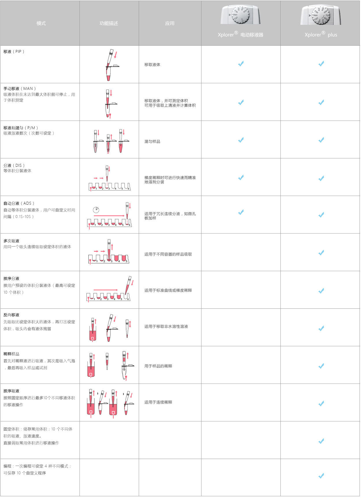 | 功能齊全 | 可根據(jù)需求選擇兩種型號(Xplorer? 5 種功能,Xplorer? plus 12 種功能) |