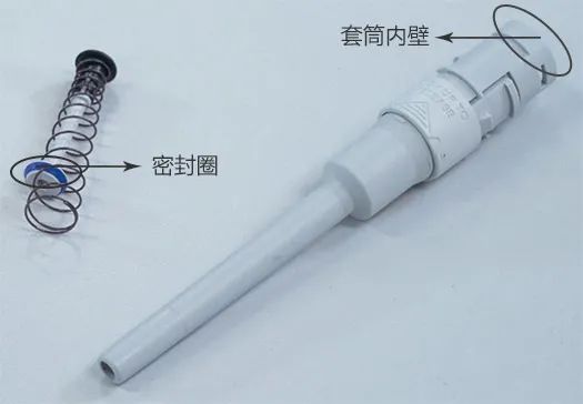 內(nèi)部清潔主要是針對(duì)套筒;如果活塞、彈簧等也有污漬,也需要清潔。使用肥皂液、洗潔精或 60 % 異丙醇清潔, 并用雙蒸水淋洗干凈,晾干后再組裝;
