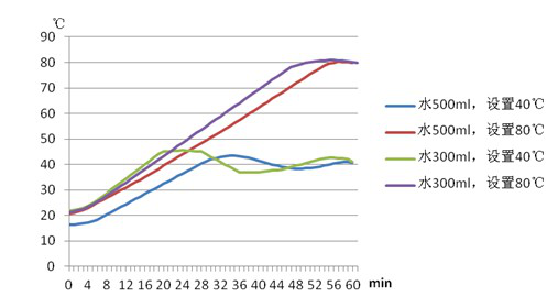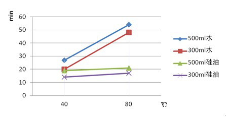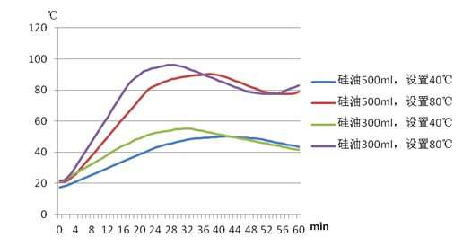 針對大龍儀器的此類產(chǎn)品,我們分別利用水和硅油作為被加熱介質(zhì),在同一溫度條件下,進(jìn)行加熱實(shí)驗(yàn),所得實(shí)驗(yàn)結(jié)果如圖2-4所示。
